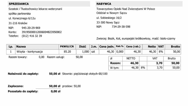 Prosimy pomóżcie opłacić nam ostatnie faktury za leczenie Bezika: