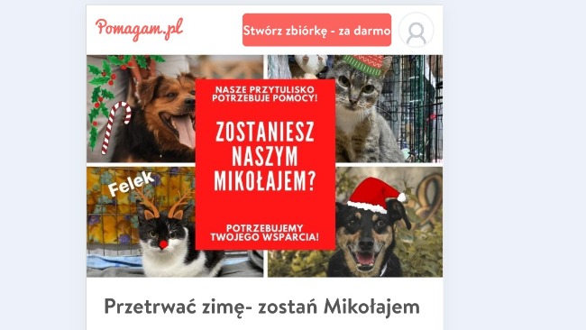 - Challenge #ŚwiątecznaPakaDlaZwierzaka: Zachęćcie obserwatorów do publikowania zdjęć swoich pupili w świątecznym klimacie. Każdy post z hasztagiem to nominacja 3 kolejnych osób do zabawy oraz symboliczna wpłata na zbiórkę, której celem jest zebranie karmy i leków na zimę dla podopiecznych schroniska.