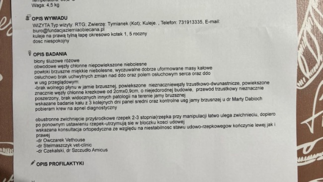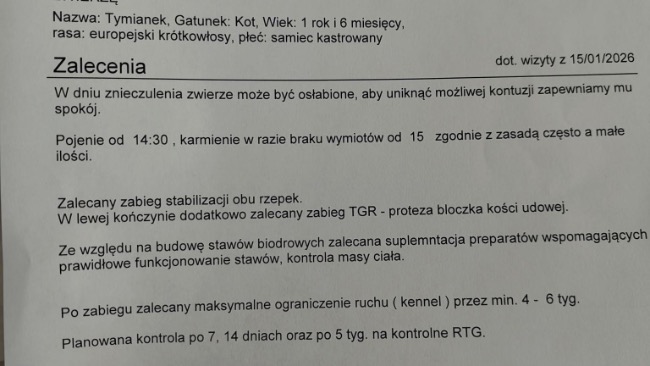 Ból będzie narastał, pojawią się zwyrodnienia, a Tymianek — choć jeszcze taki młody — może zostać skazany na trwałe kalectwo. Już teraz widać, że ogranicza ruch, bo po prostu się boi.