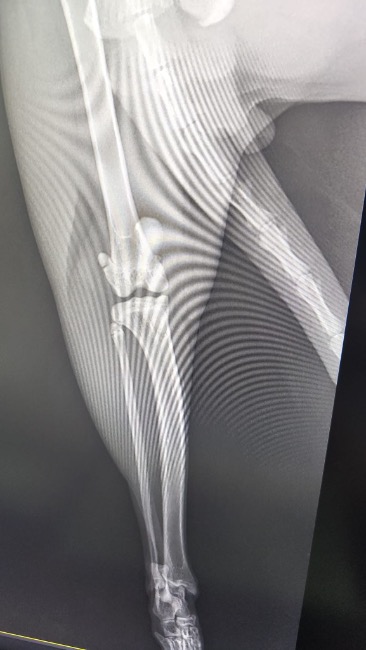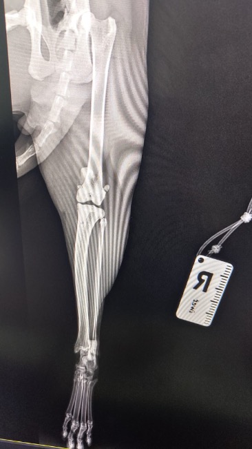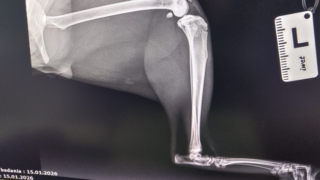 Zdiagnozowano u niego ciężką niestabilność obu rzepek, która sprawia, że każdy krok jest niepewny i bolesny. Dodatkowo lewa tylna kończyna wymaga specjalistycznego zabiegu TGR — wszczepienia protezy bloczka kości udowej.