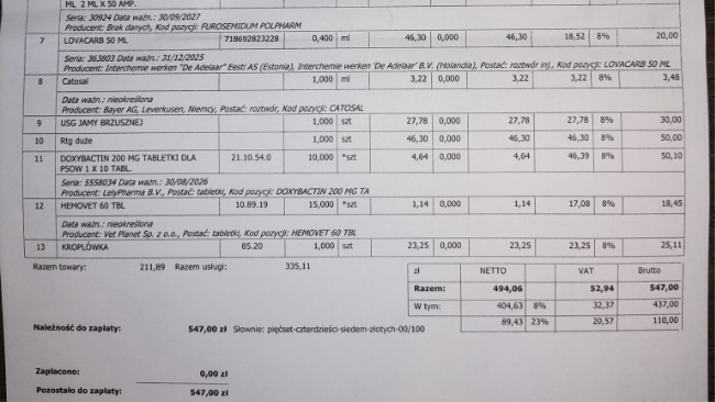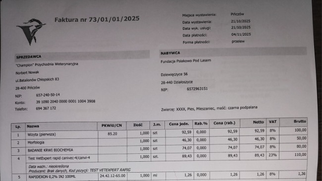 To dodatkowy pasażer na pokładzie i kolejne nieprzewidziane koszta, dlatego prosimy Was o pomoc w uregulowaniu płatności za wczorajszą wizytę.