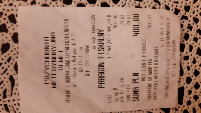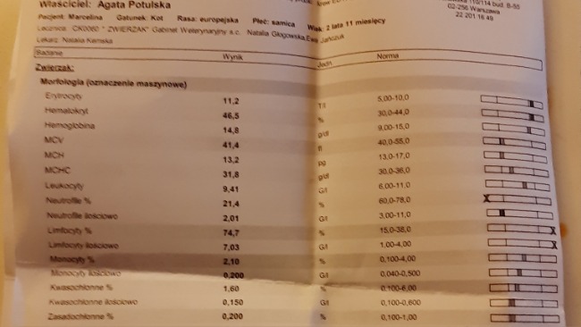 Celina zaczęła jeść, ustały wymioty oraz biegunka. Kica czuje coraz lepiej, dostaje witaminy, probiotyki. Ponownie wykonaliśmy morfologie wyniki poszły w górę. Z dnia na dzień cieszymy się z powrotu do zdrowia naszej dziewuszki