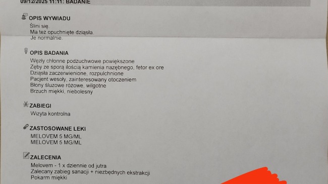 Natomiast Brownie został zabezpieczony sterydem w iniekcji działającym 2 tygodnie, ale zapach z pyszczka również narzuca konieczność interwencji stomatologicznej.