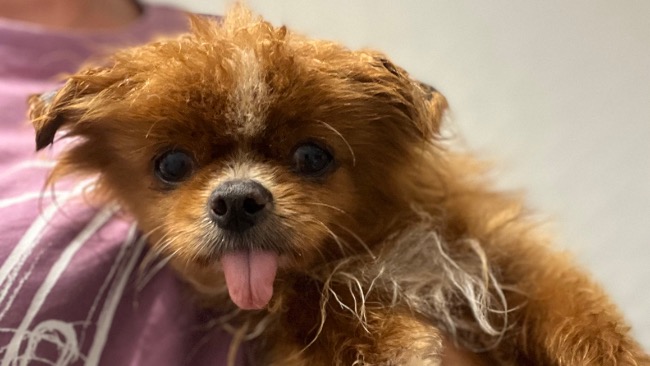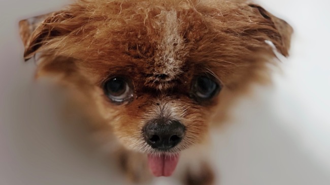 Malutki stracił swoją opiekunkę i jak to najczęściej bywa, nikt z rodziny nie chciał zaopiekować się starszym pieskiem. Bez schronienia, jedzenia i wody błąkał się po okolicy. Zżerany orzez pchły, koszmarnie brudny, cały w strupach w końcu trafił na dobrych ludzi, którzy postanowili mu pomóc.