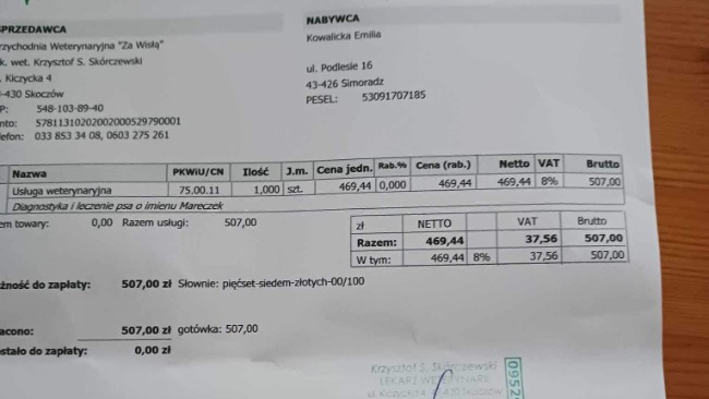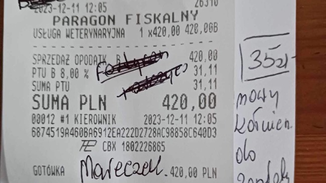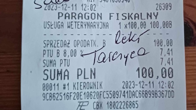 Na ostatniej zrzutce uzbierało się 1200zł za 1100zł kupiliśmy karmę…a na weta już nic nie zostało.Aktualnych faktur i paragonów za weta mamy na kolejne 1100zł.