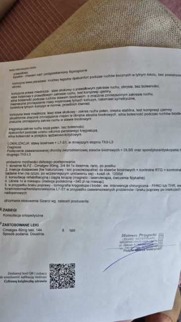 Póki co spróbujemy podstawowy pakiet fizjo razem z lekami przeciwbólowymi i suplementami. Mamy nadzieję, że to jest jakaś szansa aby mogła jeszcze trochę pochodzić i wyjść normalnie na spacer.