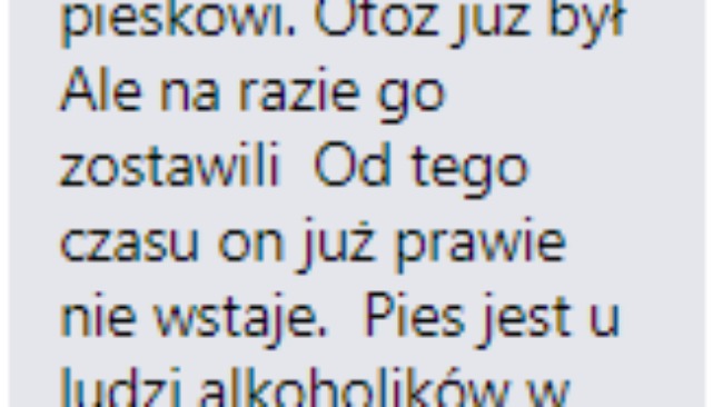 W międzyczasie włączyłam nagranie i moim oczom ukazał się stary, schorowany, nie mogący się podnieść pies.