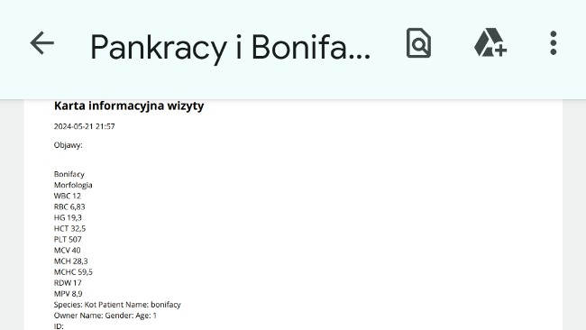 Jest też Franek, który potrzebuje leczenia w kierunku niewydolności wątroby, bo parametry są przekroczone. Zresztą nie tylko on musi przyjmować ornipural, żeby zregenerować wątrobę.