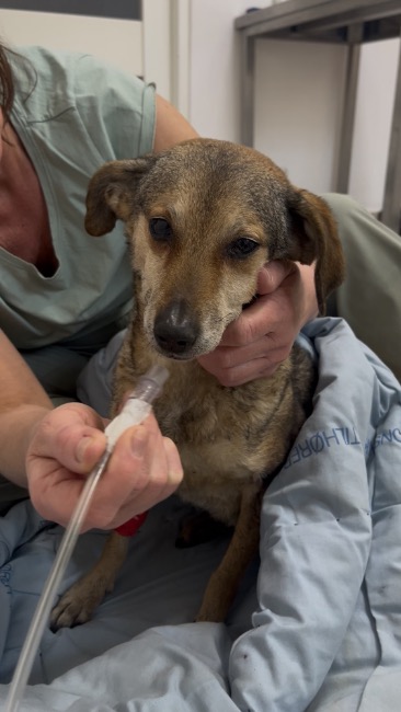 Starsza suczka, skrajnie wychudzona… kiedy przyjechała miała zaledwie 32°C 🥶