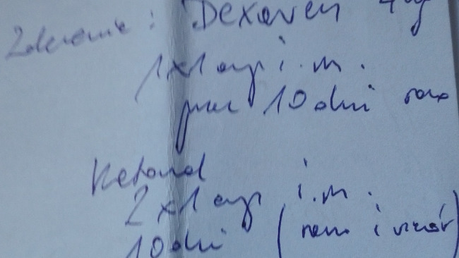 Neurolog stwierdził dyskopatie , biorę dwa razy dziennie zastrzyki , potem rehabilitacja . I czekam na rezonans .