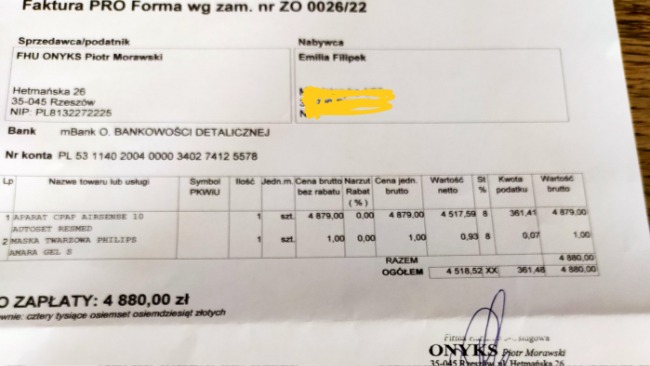 Sama nie jestem w stanie zdobyć takiej gotówki, dlatego bardzo proszę o pomoc finansową w imieniu Emilki na zakup aparatu cpapu który w tym momencie jest jej potrzebny na tkz cito ponieważ ona dusi się każdej nocy, każdej nocy niedotlenienie powoduje szereg dodatkowych problemów zdrowotnych. Budzi się zapuchnięta, z bólami głowy, niewyspana, bezdech powoduje cały czas pogorszenie i tak bardzo złego stanu zdrowia.