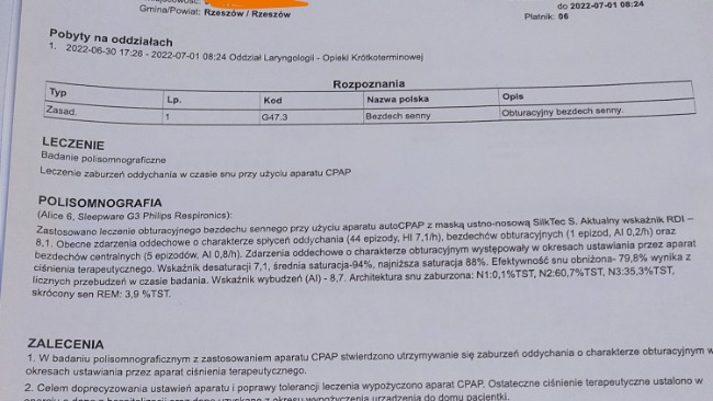 Badanie polisomnografiiczne wykazało bezdech senny RDI 36, 3 jest to ciężka postać bezdechów, norma dla dorosłych jest do 5, a ona przecież jest dzieckiem.