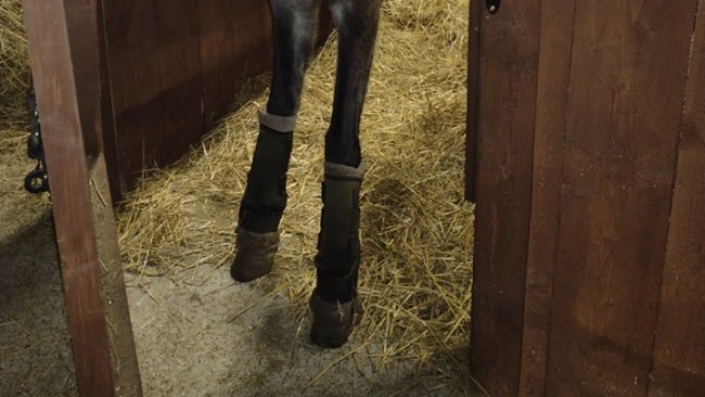 Celinka ma przykurcze obydwu przednich nóg. Przykurcze pojawiły się u niej już po okresie intensywnego wzrostu. Wszelkie opatrunki usztywniające lub zabiegi chirurgiczne stosowane u rosnących źrebaków u niej nie mają szans powodzenia. Jej ścięgna już nie rosną. Po kontakcie z chirurgami w Polsce i klinikami zagranicznymi nie mamy złudzeń… Jedyne co możemy dla niej zrobić to codzienny, kontrolowany ruch, ochraniacze stajenne i padokowe chroniące i podtrzymujące jej stawy pęcinowe, fizjoterapia, ortopedyczne kucie, suplementacja przeciążonych stawów i mięśni, codzienne ćwiczenia i monitorowanie stanu jej stawów oraz badań krwi, żeby móc wspomagać ją lekami i suplementami kiedy potrzeba.