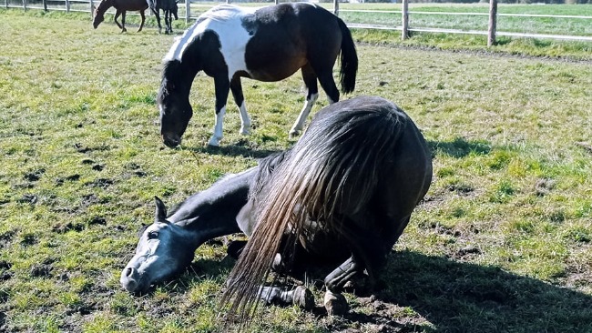 Uprzedzając pytania, na chwilę obecną nie cierpi, paradoksalnie najlepiej radzi sobie w kłusie i galopie dotrzymując tempa zdrowym koniom. Ma dobry apetyt, jej pogoda ducha, temperament i ciekawość świata dają znać, że czuje się dobrze. Póki tak jest niech cieszy się życiem. My musimy zadbać o to, żeby jak najdłużej utrzymać ten stan. Mam nadzieję, że trochę ją i nas w tym wspomożecie.