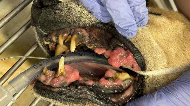 Po dokładnym badaniu jamy ustnej lekarze stwierdzili bardzo zły stan uzębienia i duża zmiana nadziąślaków oraz zeszkliwienie niektórych z nich.