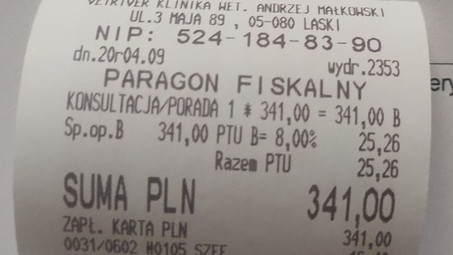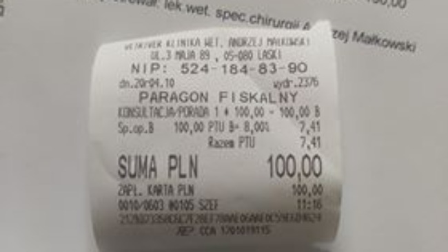 Za miesiąc kontrola u weterynarza.