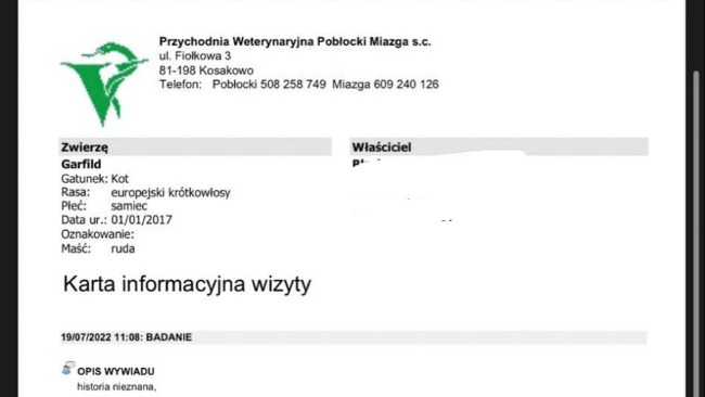 Garfield ma raka, jest pod opieką najlepszego onkologa, będziemy razem walczyć.