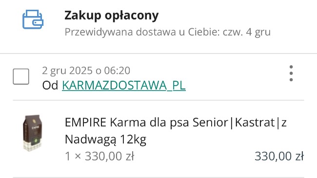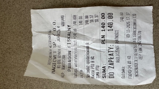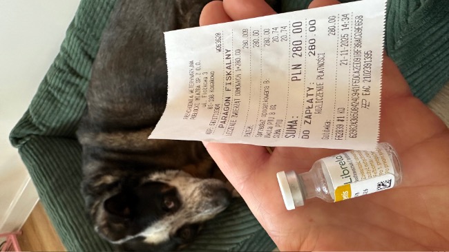 Katel musiał dostać dobrą odtłuszczoną karmę, ponieważ musimy go odchudzić ze względna na jego kondycję i zwyrodnienia.