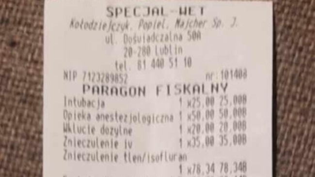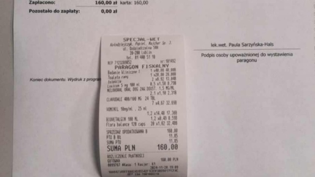 Faktura za ostatnie zamówienie karmy