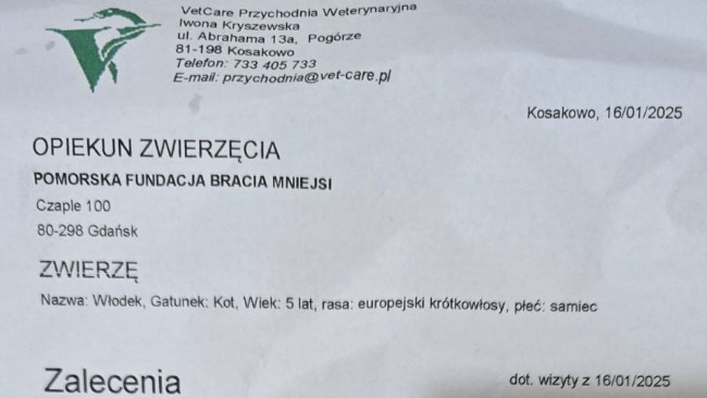 Nasz kochany Włodek to wyjątkowy kot, który znajduje się pod opieką Pomorskiej Fundacji Bracia Mniejsi – oddział Chwarzno. Niedawno Włodek poczuł się gorzej – przestał się wypróżniać i stracił apetyt. Wiedzieliśmy, że trzeba działać szybko, dlatego od razu trafił do weterynarza.