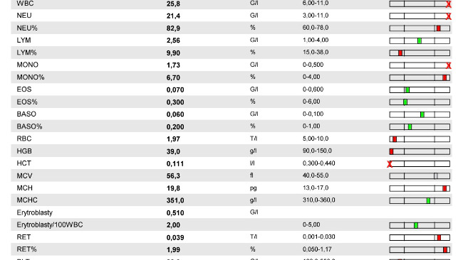 Mija właśnie 4 doba od operacji Angel. Po zachowaniu kota sądzić można, że raczej wszystko jest w porządku. Zaczyna wreszcie normalnie jeść i jest bardziej żywa. Od 4 dni jednak pilnujemy w dzień i w nocy temperatury, która o północy dochodzi do 40°C. Potem ją zbijamy lekami. Przy tak ciężkiej operacji (połączenie „czytaj” z zabiegiem „brudnym”) istnieje ogromne ryzyko wystąpienie sepsy. O tym, czy operacja przyniosła rozwiązanie problemów zdrowotnych kota i czy jej organizm będzie w stanie produkować na tyle czerwonych krwinek by mogła żyć, przekonamy się po kilku badaniach pełnej morfologii krwi.