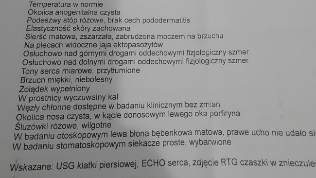 Weterynarz do którego chodzili nie zauważył ogromnej ilości wszy, które były widoczne gołym okiem! Nie zauważył zapalenia uszu! Stwierdził, że jak guz to śmierć!