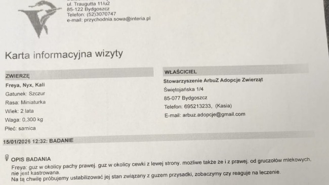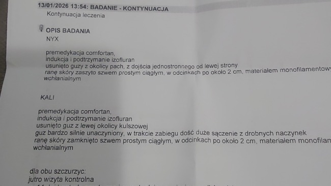 Dwie dziewczynki na cito miały zabiegi usunięcia guzów. Tutaj bardzo chcemy podziękować doktor Marcie, która bez zastanowienia zgodziła się wykonać zabiegi. Usunęła wszystko idealnie! Dziewczynki przeżyły.
