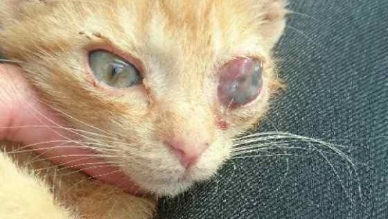 Taki kociak został znaleziony przez dobrą duszyczkę. Duszyczka, pewnie dlatego, że jest osobą wrażliwą ma już pod opieką ok. 20 kotów i nie udźwignie ciężaru finansowego operacji, leczenia oraz odkarmienia kociaka (karma o wysokiej jakości). Zobowiązaliśmy się pomóc w opłaceniu usunięcia tego co zostało po oczku, wesprzeć karmą a z czasem pomóc w szukaniu domu