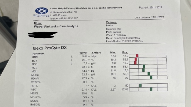 Metka od 2 tygodni jest na obserwacji. W Walentynki podaliśmy ostatni zastrzyk. Dziękuję za wszystkie wpłaty, pomogły nam wziąć udział w programie 1+1 u producenta leku ☺️ Metka czuje się świetnie, wyniki końcowe miała jak przeciętny zdrowy kotek, na ten moment nie ma żadnych podejrzeń nawrotu. Metka jest prawdziwym kocim chaosem, ale jest zdrowa i szczęśliwa ❤️