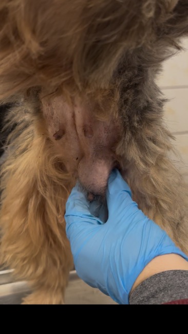Ich stan w chwili odebrania był przerażający. Sierść była jednym wielkim filcem. Po jej obcięciu okazało się, że pod spodem kryje się poraniona, zaniedbana skóra, pełna pcheł i kleszczy. 🤢