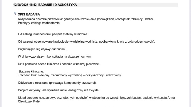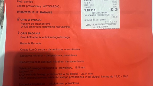 01.07.2025 – kolejna wizyta u kardiologa w związku z pogorszeniem stanu zdrowia stwierdzonym podczas ostatniego badania.