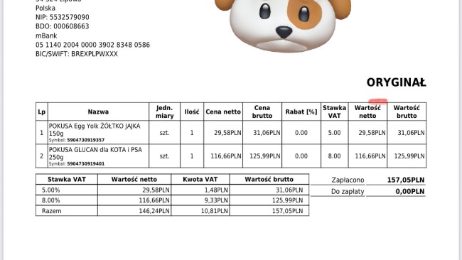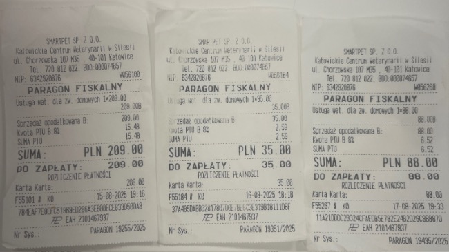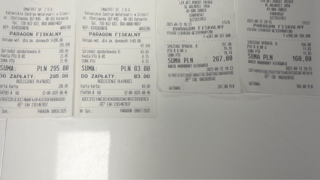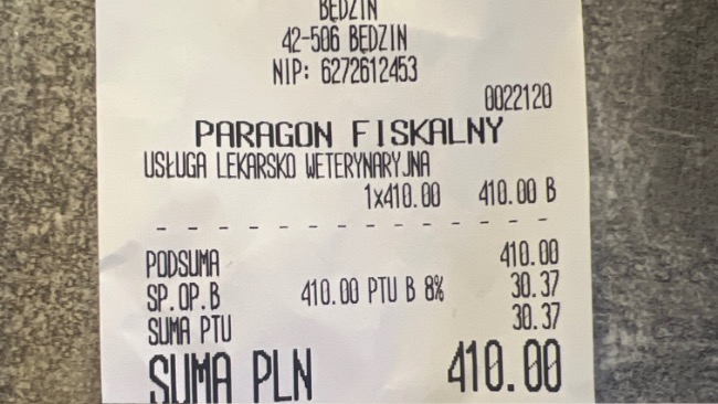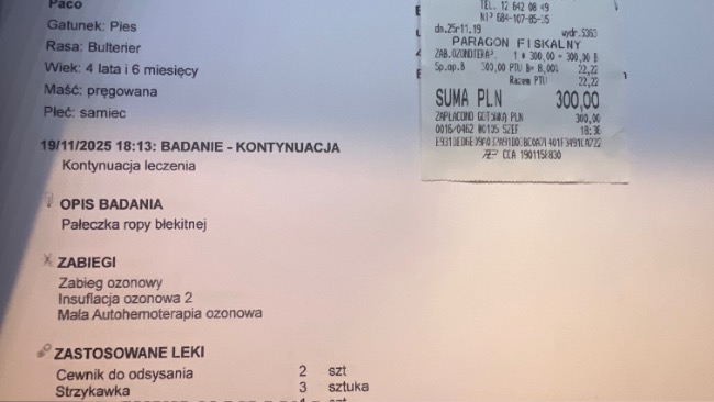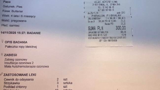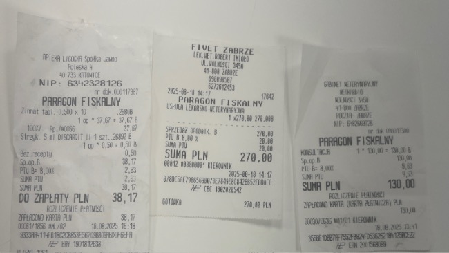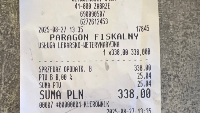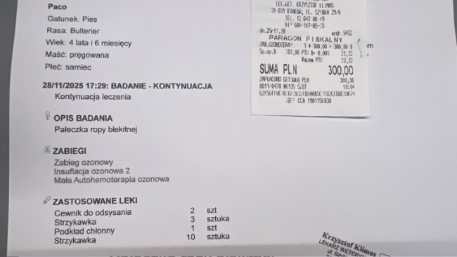 Aktualnie po podliczeniu wszystkich rachunków koszt leczenia Paco wynosi na dzień 06.09.25 ok 34919,76zł