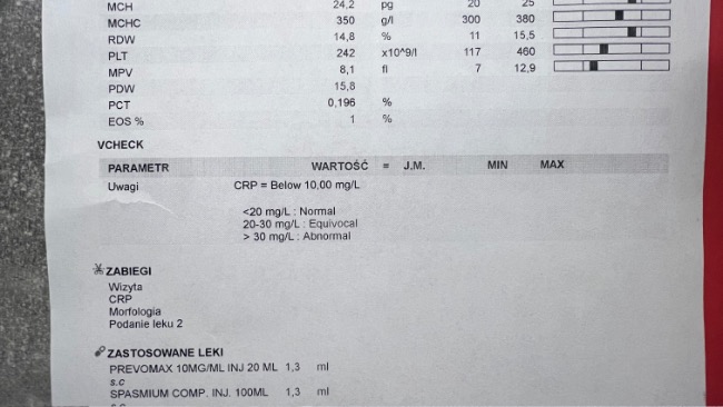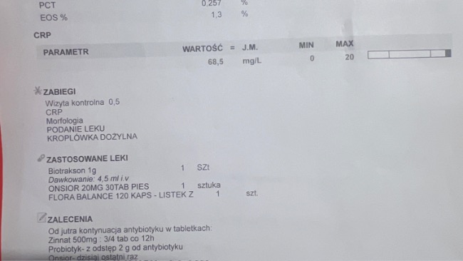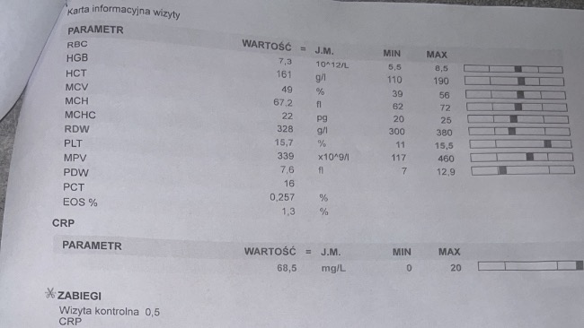 Dziś zostało również przeprowadzone badanie CRP – oczekuję na wyniki.