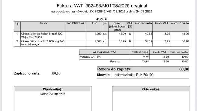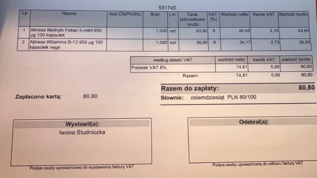Zostały domówione sumplementy B12 i kwas foliowy
