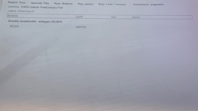 Za pierwszym razem po kuracji antybiotykiem udało się pozbyć lamblii. Tego dnia Paco też miał kontrole płuc i serduszka w wetkardio w Zabrzu