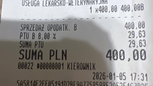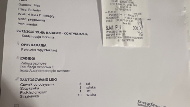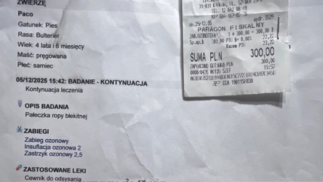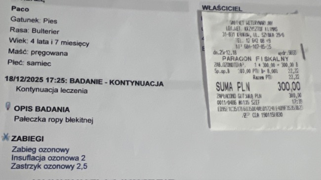 Tego samego dnia byłam również z Paco w klinice dr Klimas w Krakowie na terapii ozonowej. Oby przyniosła to, czego tak bardzo potrzebujemy — poprawę stanu zdrowia i ulgi w oddychaniu i zwalczeniu bakterii.