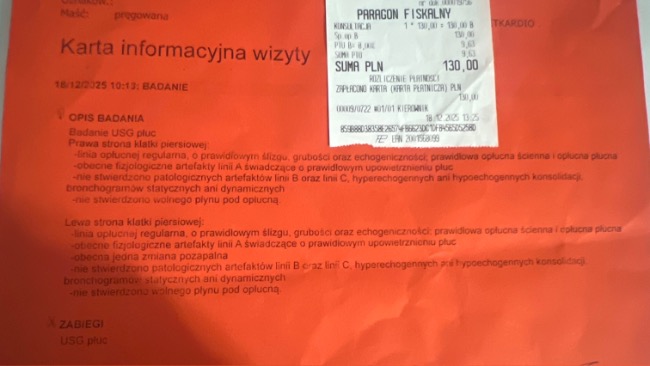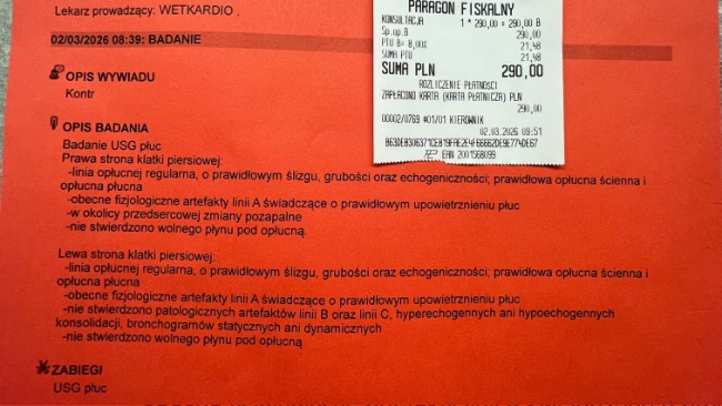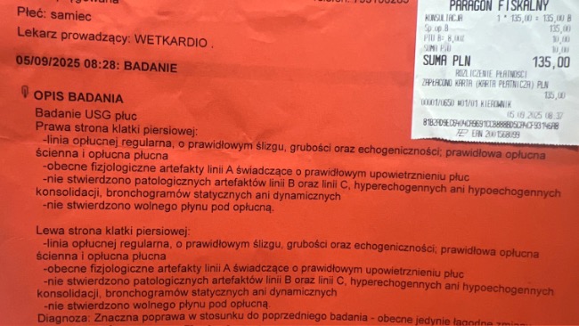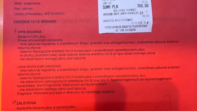 Dzisiaj kontrolne USG płuc.