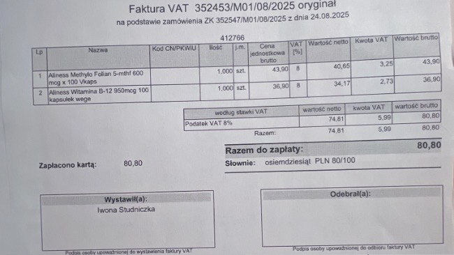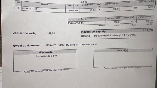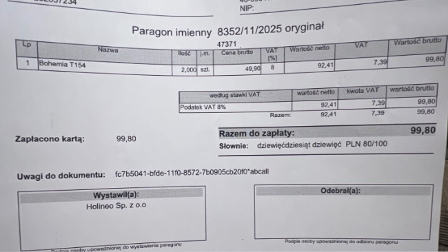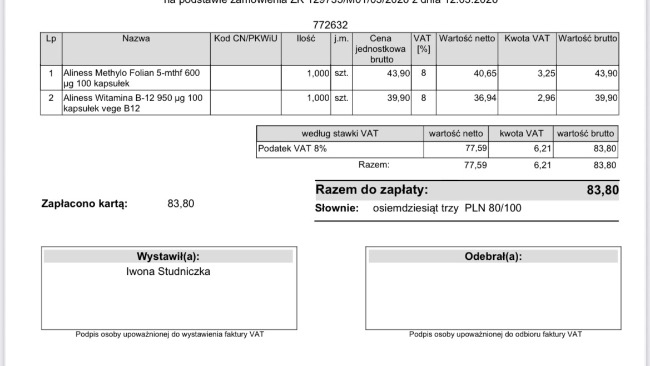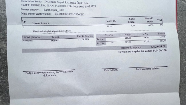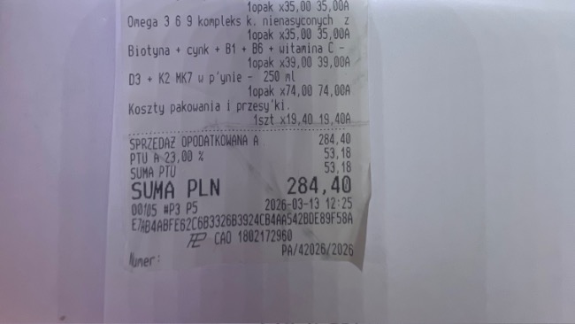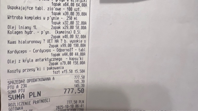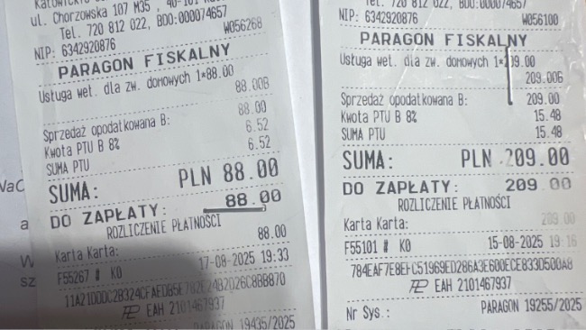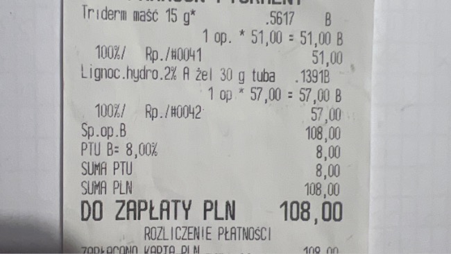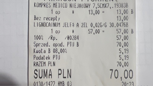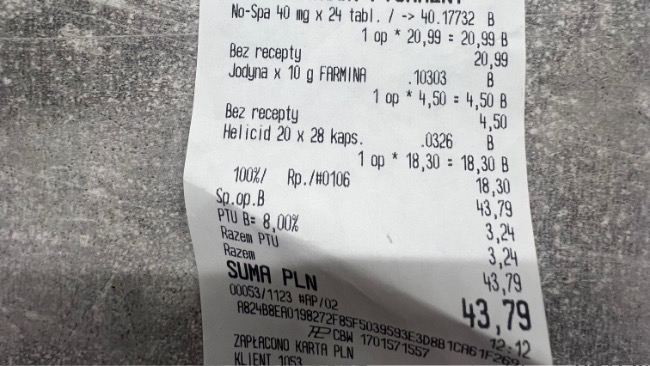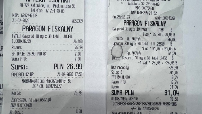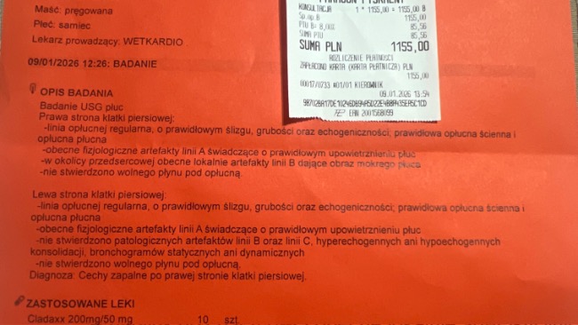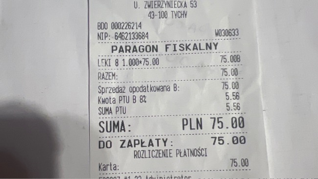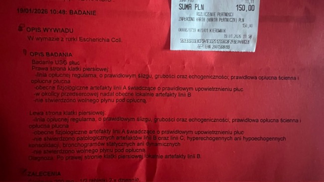 Dopiero po zakończeniu terapii został wystawiony paragon – koszt tych 10 sesji to 1000 zł.Do tego dochodzą koszty wizyt, badań USG oraz leków.