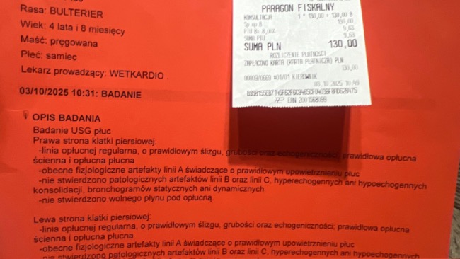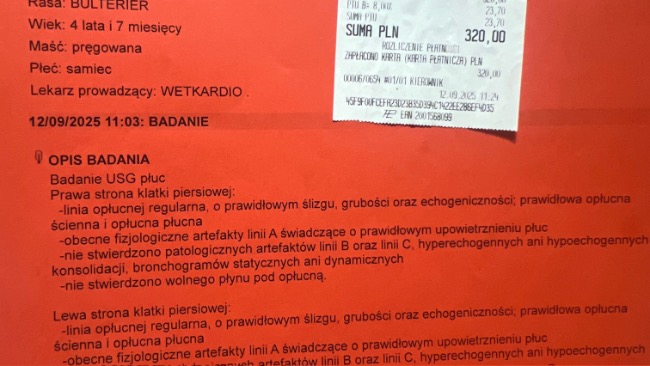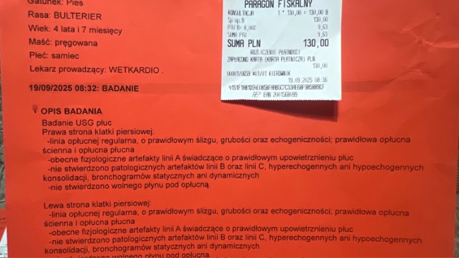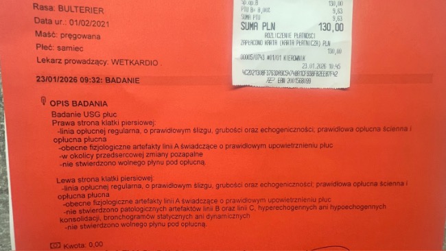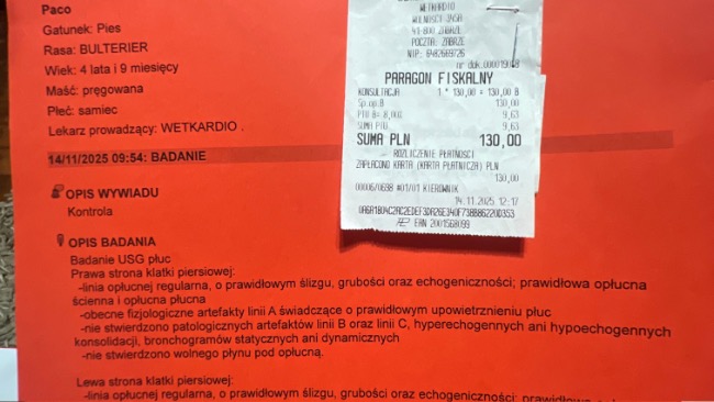 Paco był na kontroli u kardiologa w wetkardio – na szczęście pole płucne jest bez patologii