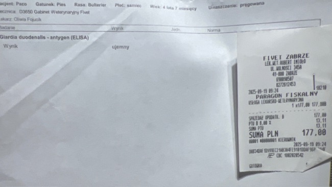 Paco jest wzmacniany akupunkturą, suplementami, na antybiotykach, a dodatkowo jeszcze zmagamy się z lamblią która została wykryta u drugiego psiaka Pimpka więc Paco jest już w tej chwili na dwóch antybiotykach . W piątek 06.09.25 jedziemy na kontrolę płuc . Każdy dzień to walka, bo u Paco nie może dojść do żadnej infekcji ani nawet najmniejszego przeziębienia