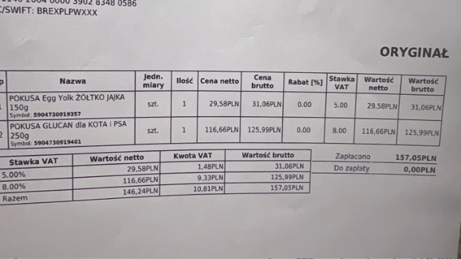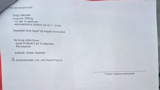 Dodatkowo zostały zamówione suplemty aby podnieść jego odporność