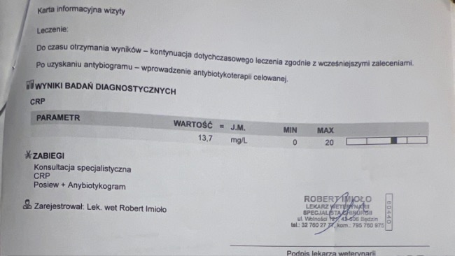 Przyszły wyniki badań Paco – niestety wykazały stan zapalny.