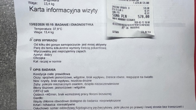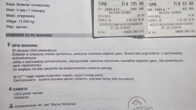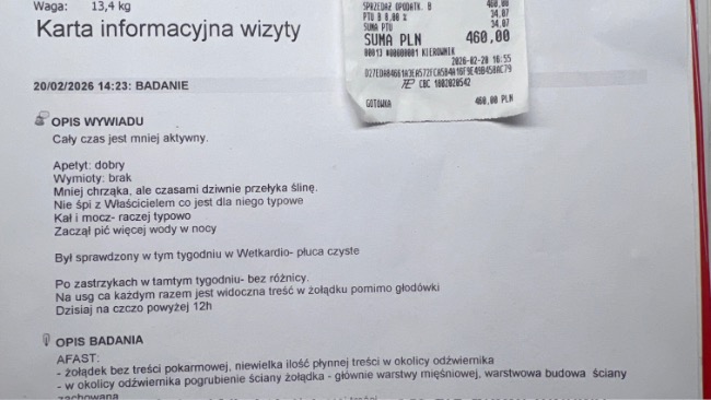 W związku z nocnymi wymiotami które Paco miał dwa dni z rzędu 08.04.26 będzie miał wykonaną gastroskopie
