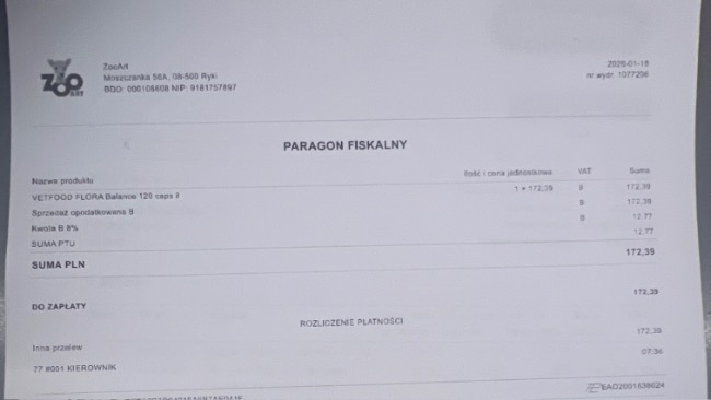 Został zamówiony probiotyk dla Paco