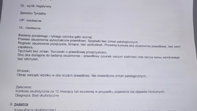 Dzisiaj otrzymałam wyniki.