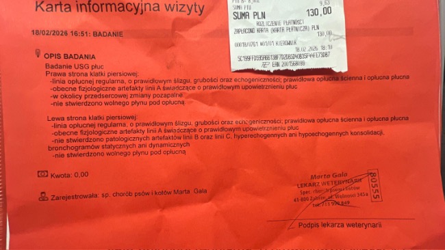 W dniu 11.06.25 klinika poinformowała mnie telefonicznie że Paco gorzej oddycha 🥺