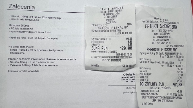 18.02.26 wizyta u kardiologa w celu sprawdzenia płuc a także 20.02.26 wizyta u gastrologa