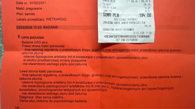 Jutro jedziemy do Wetkardio na USG płuc, żeby sprawdzić, czy tam też nic złego się nie dzieje.