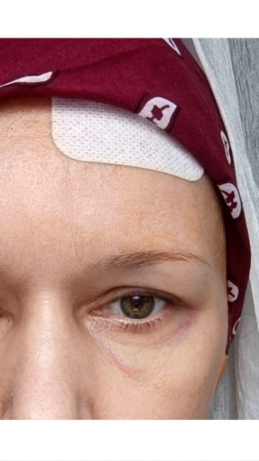 Nadal ślady siniaka pod okiem od operacji.