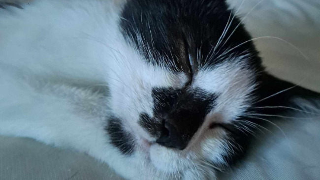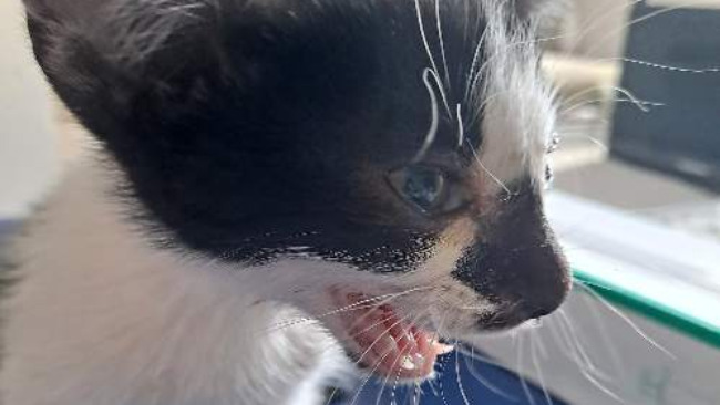Kociaka znalazły dzieciaki przy ulicy pod płotem, wyziębionego, głodnego z ciężkim oddechem i silną infekcją kociego kataru.